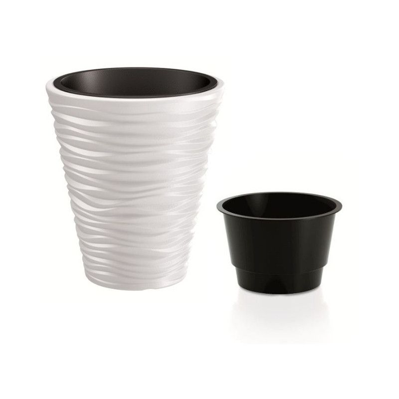 Квітковий горщик Sand з вкладом - виготовлений з якісного пластику, стійкого до дії сонячних променів та вологи. Він легкий і стійкий, має модний дизайн та гарне забарвлення. Елегантний рифлений візерунок і приємний глянсовий блиск надають особливого шарму та ошатності. Горщик підійде для декорування тераси, балкону, кафе чи квартири. Внутрішній внесок зробить посадку рослини та догляд за нею легше та зручніше.