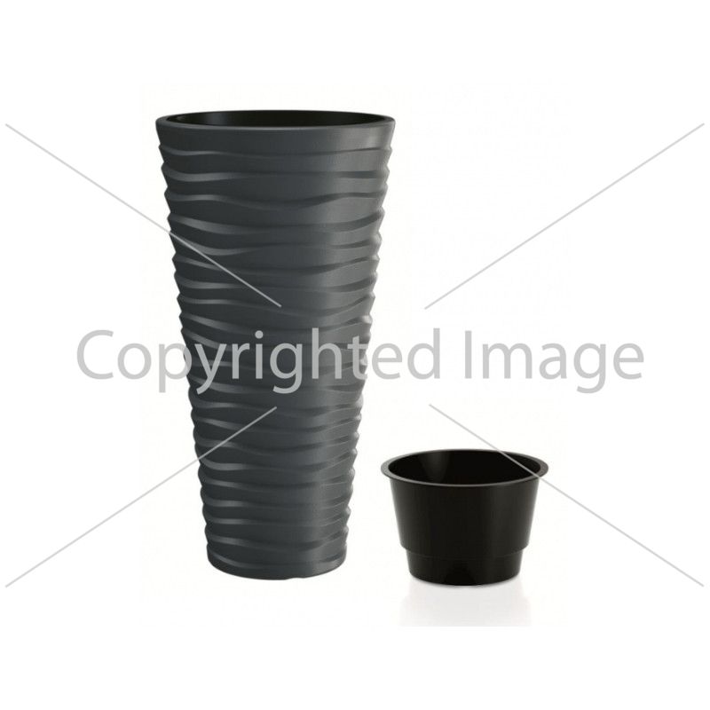 Квітковий горщик Sand slim із вкладом - виготовлений з якісного пластику, стійкого до дії сонячних променів та вологи. Він легкий і стійкий, має модний дизайн та гарне забарвлення. Елегантний рифлений візерунок та приємний глянсовий блиск надають особливого шарму та ошатності. Горщик підійде для декорування тераси, балкону, кафе чи квартири. Внутрішній внесок зробить посадку рослин і догляд за ними легшим та зручнішим.