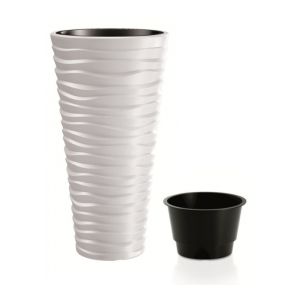 Квітковий горщик Sand slim із вкладом - виготовлений з якісного пластику, стійкого до дії сонячних променів та вологи. Він легкий і стійкий, має модний дизайн та гарне забарвлення. Елегантний рифлений візерунок і приємний глянсовий блиск надають особливого шарму та ошатності. Горщик підійде для декорування тераси, балкону, кафе чи квартири. Внутрішній внесок зробить посадку рослин і догляд за ними легшим та зручнішим.