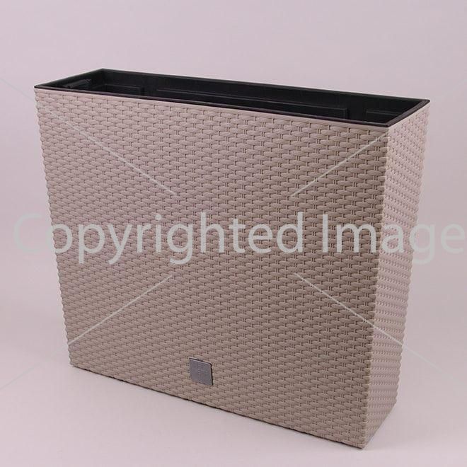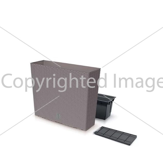 Квітковий горщик із вкладом RATO CASE високий - виготовлений з якісного пластику, стійкого до дії сонячних променів та вологи. Він легкий і стійкий, має модний дизайн та забарвлення у спокійних тонах. Фактура ротанга надає горщику вигляду натурального виробу, приносить атмосферу тепла та затишку. Він підійде для декорування тераси, балкону, кафе чи квартири. Внутрішній внесок зробить посадку рослини та догляд за нею легше та зручніше.