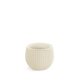 Горщик пластмасовий із вкладом Splofy Bowl – створює враження приємного на дотик, наслідування слабо плетеної м'якої товстої нитки, що нагадує традиційні в'язальні візерунки, що вдало вписуються в сучасні тенденції. Колекція у делікатних нейтральних та пастельних тонах стала справжнім хітом на ринку.