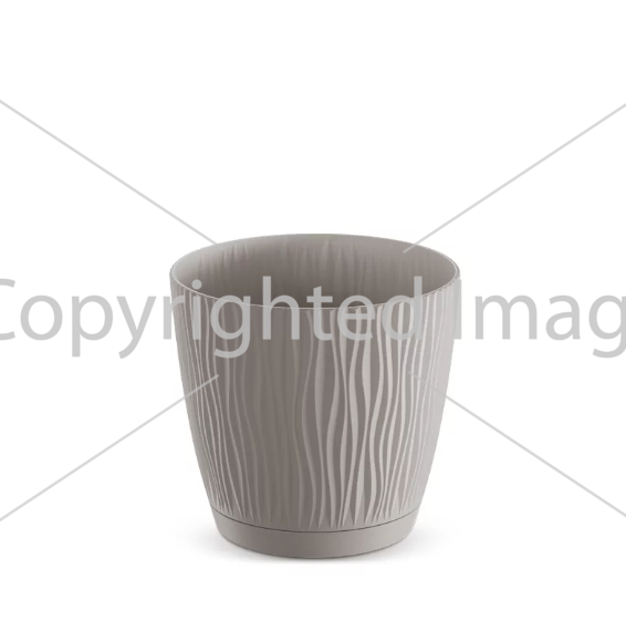 Горщик пластмасовий антрацитового кольору з колекції SANDY із хвилеподібною поверхнею, сформованою за зразком пустельного піску. Оснащений підставкою із системою самоблокування.