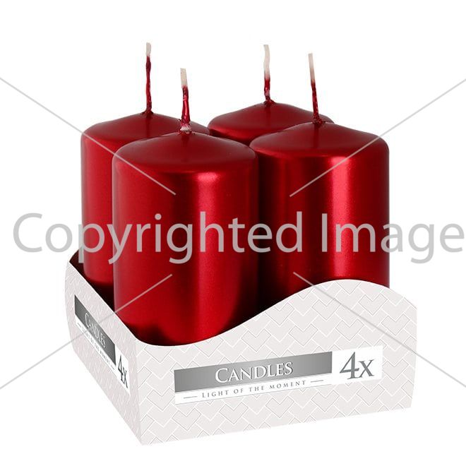 Комплект червоних свічок Bispol Циліндр 4х8 см. (4 шт.) 27375