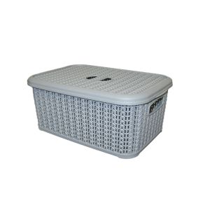 Кошик KNIT прямокутний з кришкою, 6л Сірий металік