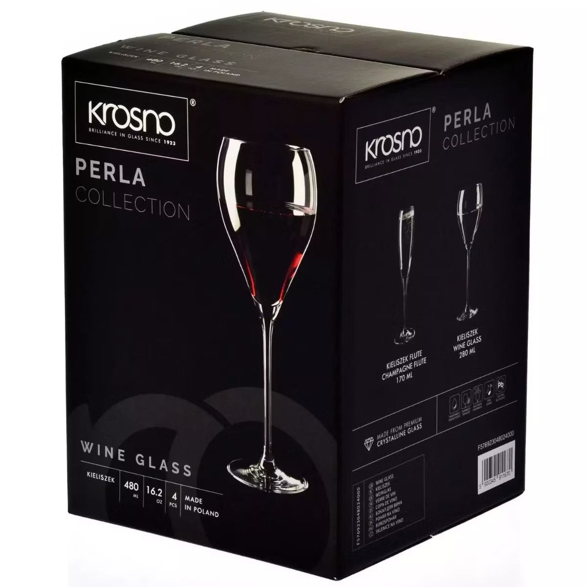 Набір келихів для вина Krosno Perla Elegance, скло, 480 мл, 4 шт.