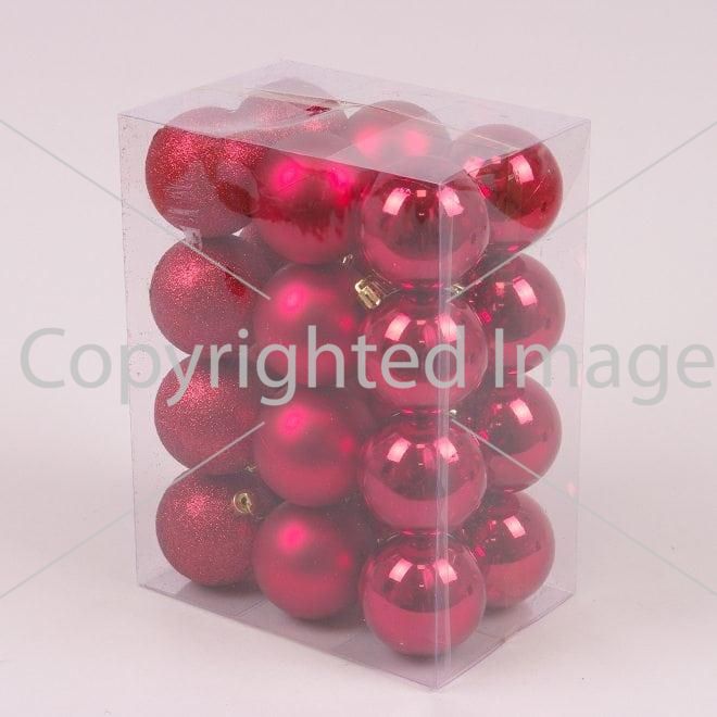 Набір пластикових ялинкових куль, колір червоний, 24 шт. діаметром - 6 см: 8 шт. - глянець, 8 шт. - Глітер, 8 шт. - Матовий.
