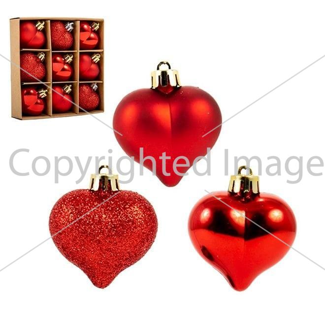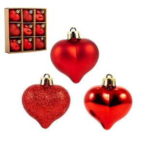 Набір пластикових ялинкових прикрас Серце, колір - червоний, 9 шт. діаметром - 4.5 см: 3 шт. - глянець, 3 шт. - Матовий, 3 шт. - Глітер.