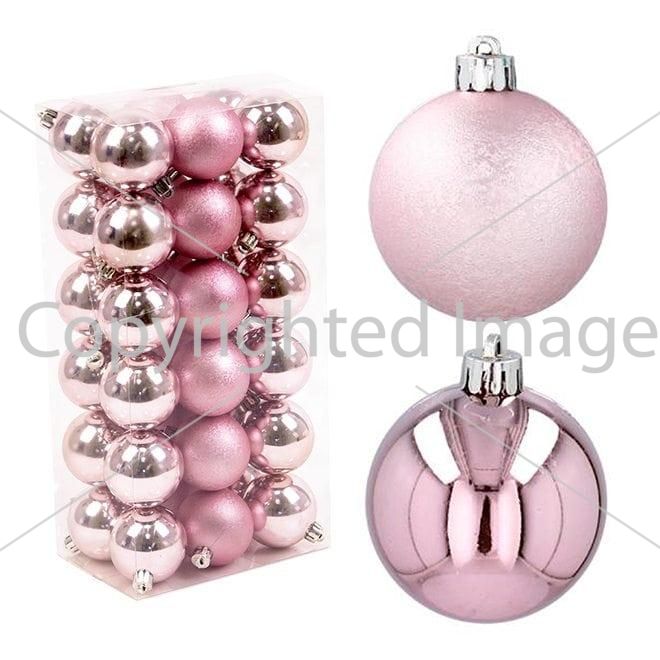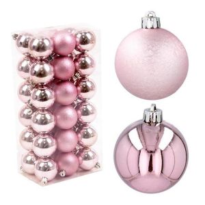 Набір пластикових ялинкових куль, колір рожевий, 36 шт. діаметром - 5 см: 24 шт. - глянсовий, 12 шт. - Матовий.