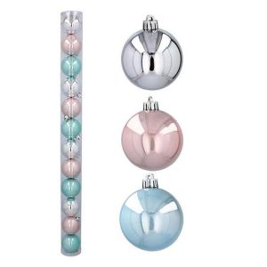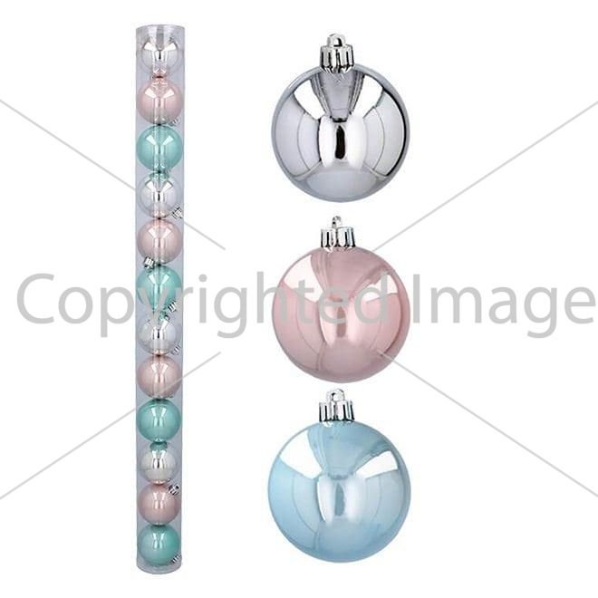 Набір пластикових ялинкових куль, колір - глянсовий срібний - 4 шт. рожевий глянсовий – 4 шт. блакитний глянсовий – 4 шт. діаметром – 6 см.