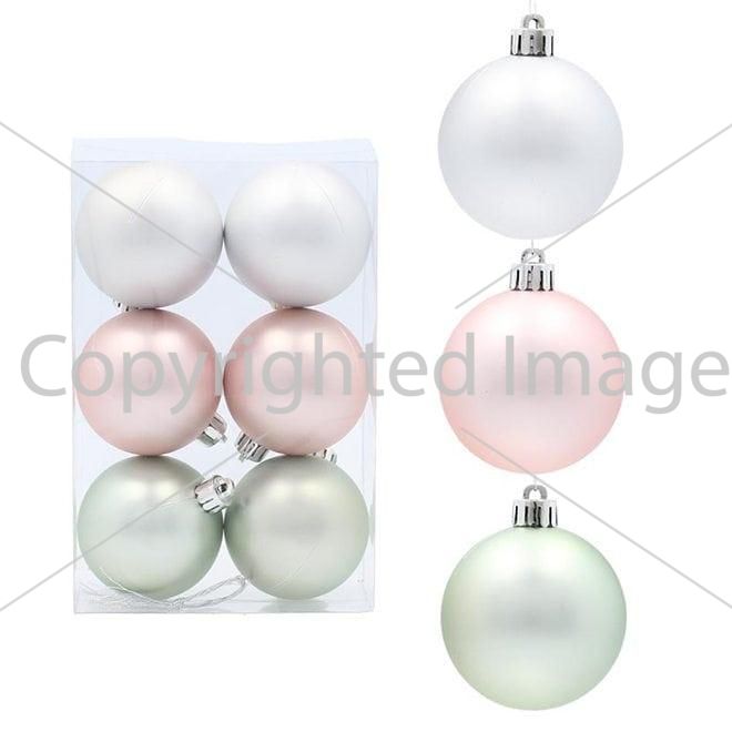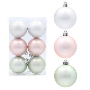 Набір пластикових ялинкових куль, колір – рожевий – 2 шт. срібний – 2 шт. м'ятний – 2 шт. діаметром - 6 см: 6 шт. - Матовий.