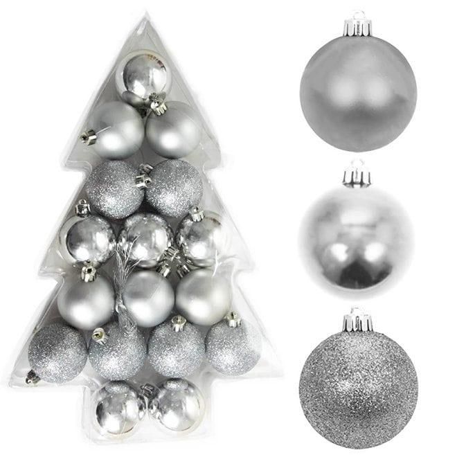 Набір пластикових ялинкових куль, колір срібний, 17 шт. діаметром – 5 см: глянсовий – 6 шт. матовий – 5 шт. глітер – 6 шт.