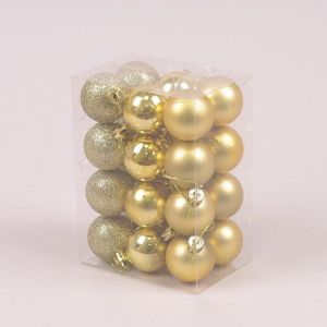 Набір пластикових ялинкових куль, колір золотий, 24 шт. діаметром - 4 см: 8 шт. - глянець, 8 шт. - Глітер, 8 шт. - Матовий.
