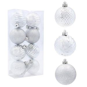 Набір пластикових ялинкових куль, колір срібний, 8 шт. діаметром – 6 см: фігурний глянсовий – 6 шт. глітер – 2 шт.