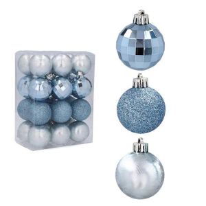 Набір пластикових ялинкових куль, колір синій, 24 шт. діаметром - 4 см: 6 шт. - глітер, 12 шт. - Матовий, 6 шт. - Фігурний.