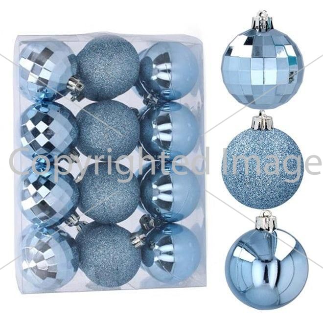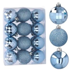 Набір пластикових ялинкових куль, колір синій, 24 шт. діаметром - 5 см: 8 шт. - глянець, 8 шт. - Глітер, 8 шт. - Фігурний.
