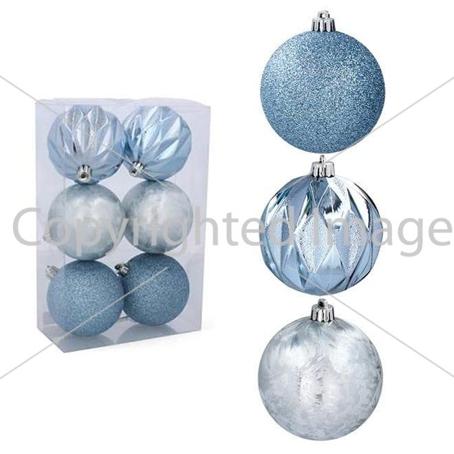 Набір пластикових ялинкових куль, колір синій, 6 шт. діаметром - 8 см: 2 шт. - Глітер, 2 шт. - Матовий, 2 шт. - Фігурний.