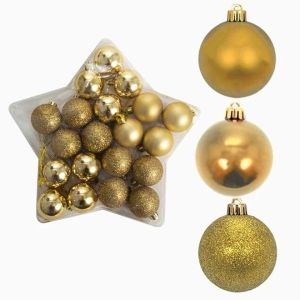Набір пластикових ялинкових куль, колір золотий, 20 шт. діаметром - 4 см: 8 шт. - глянець, 8 шт. - глітер, 4 шт. - Матовий.