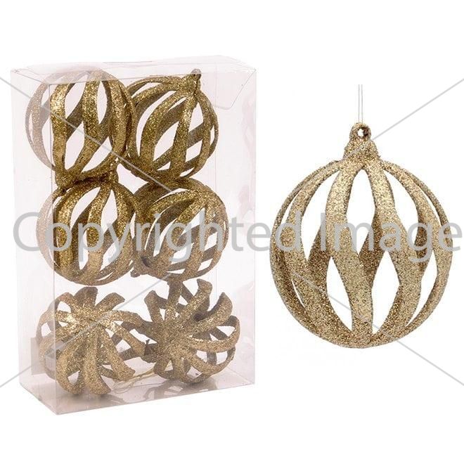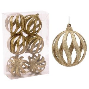 Набір пластикових ялинкових куль, колір золотий, 6 шт. діаметром - 8 см: 6 шт. - Фігурний гліттер.