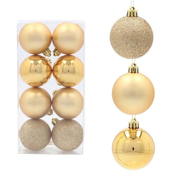 Набір пластикових ялинкових куль, колір золотий, 8 шт. діаметром – 5 см: глянсовий – 2 шт. матовий – 4 шт. глітер – 2 шт.