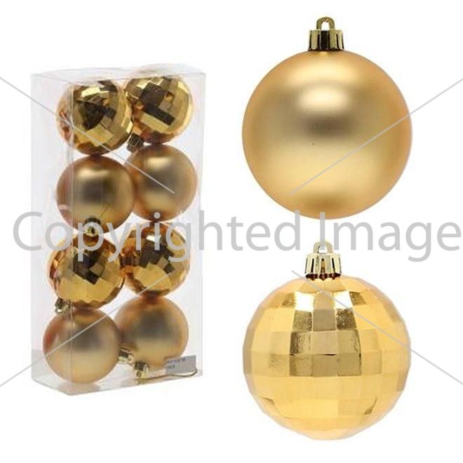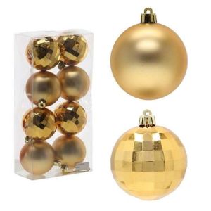 Набір пластикових ялинкових куль, колір золотий, 8 шт. діаметром - 7 см: фігурний глянсовий - 4 шт. матовий – 4 шт.