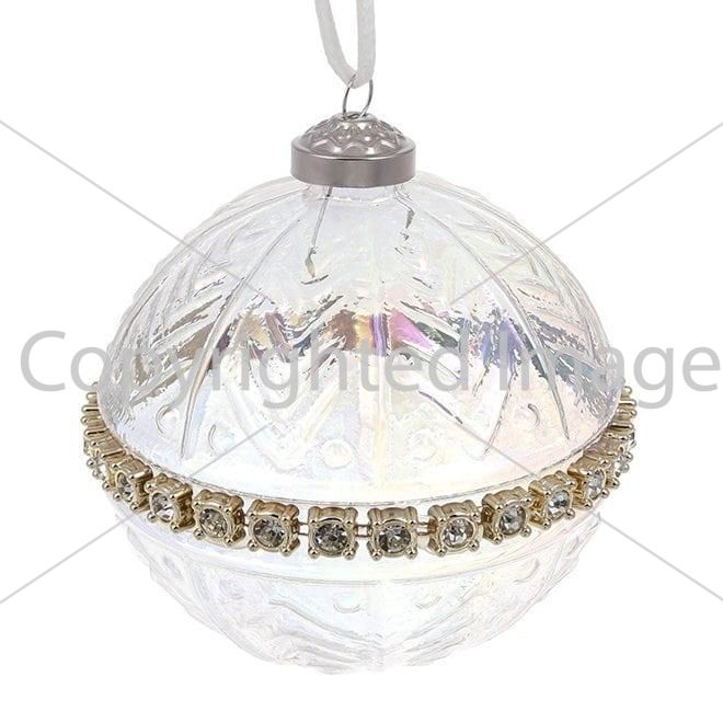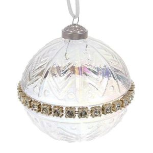 Набір новорічних скляних підвісок з рельєфним візерунком та декором з каміння, 10 см, колір - діамантовий прозорий.
