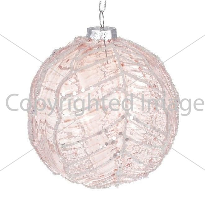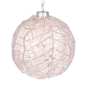 Набір скляних кульок рельєфної форми з декором із глітера 10 см, колір – рожево-бежевий.