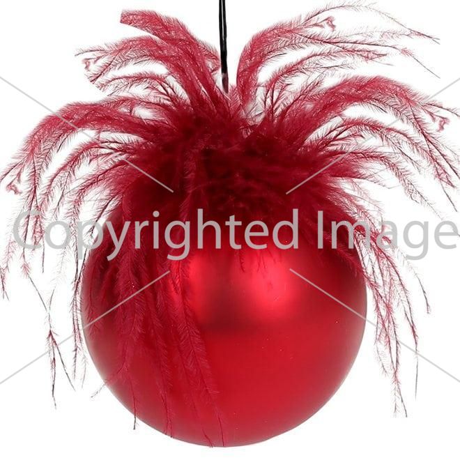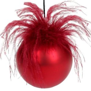 Набір скляних кульок з матовим покриттям та декором з пір'я, 10 см, колір - червоний.