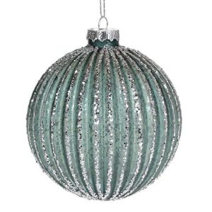 Набір скляних кульок рельєфної форми із глітером 10 см, колір – темна бірюза.