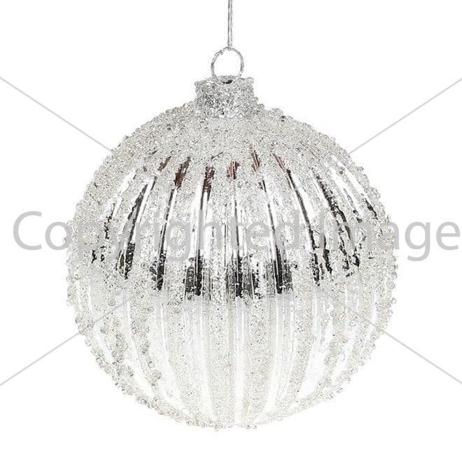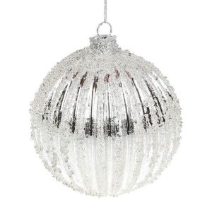 Набір скляних кульок 10 см. рельєфної форми з декором із глітера та бісеру, колір - срібний.