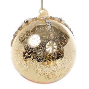 Набір скляних куль 10 см. золото антик з декором зі страз і намистин.