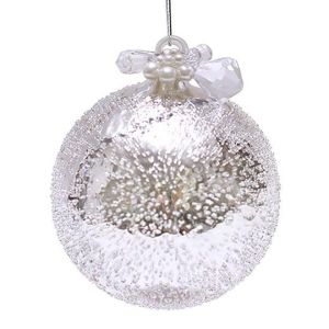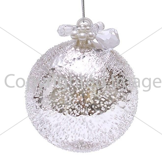 Набір скляних кульок 10 см. срібло з покриттям "лід", з декором з намистин та перлів.