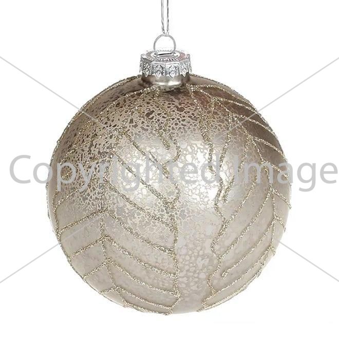 Набір скляних кульок з матовим покриттям та малюнком із гліттера, 10 см. колір – сталевий антик.