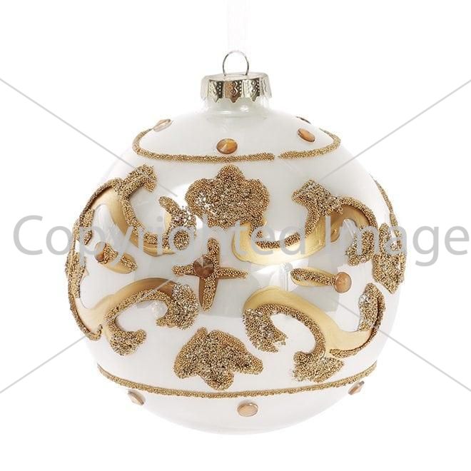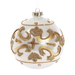 Набір скляних кульок з розписом 10 см, колір перлинний із золотом.