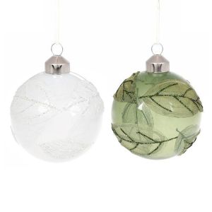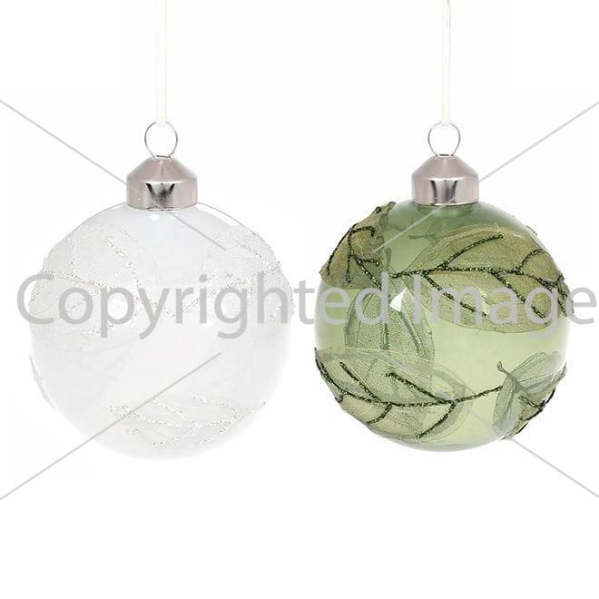 Набір скляних кульок 8 см. Аркуш, прозоре скло, мікс 2 кольорів – зелений, білий.
