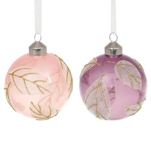 Набір скляних кульок 8 см. Аркуш, прозоре скло, мікс 2 кольорів – рожевий, фіолетовий.