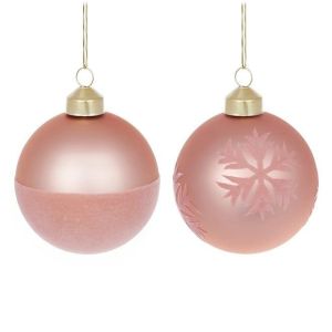 Набір скляних кульок 8 см. оксамитовий орнамент, колір - рожевий матовий, 2 дизайну в дисплей коробці.