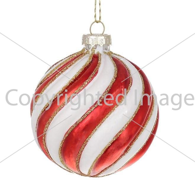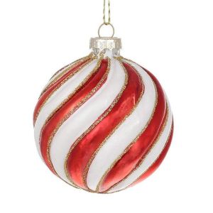 Набір скляних кульок з рельєфом та декором із глітера, 8 см, колір – червоно-білий.