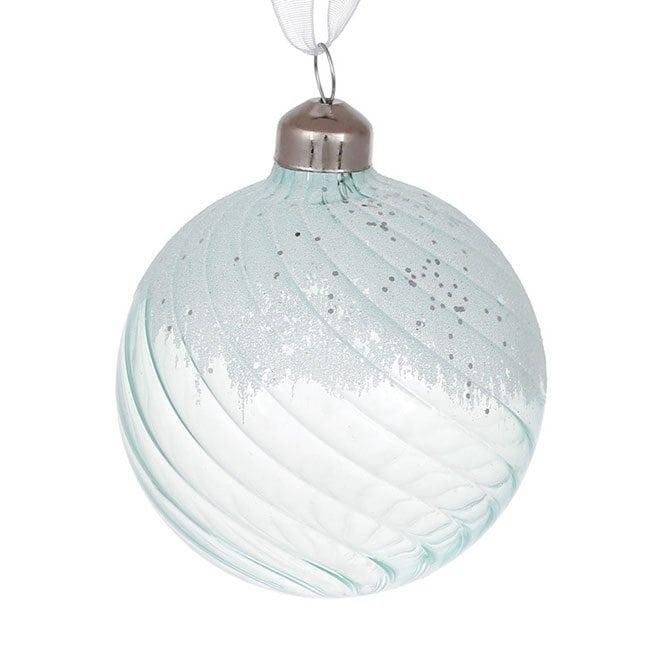 Набір скляних кульок рельєфної форми з декором із глітера 8 см, колір – ніжна м'ята.