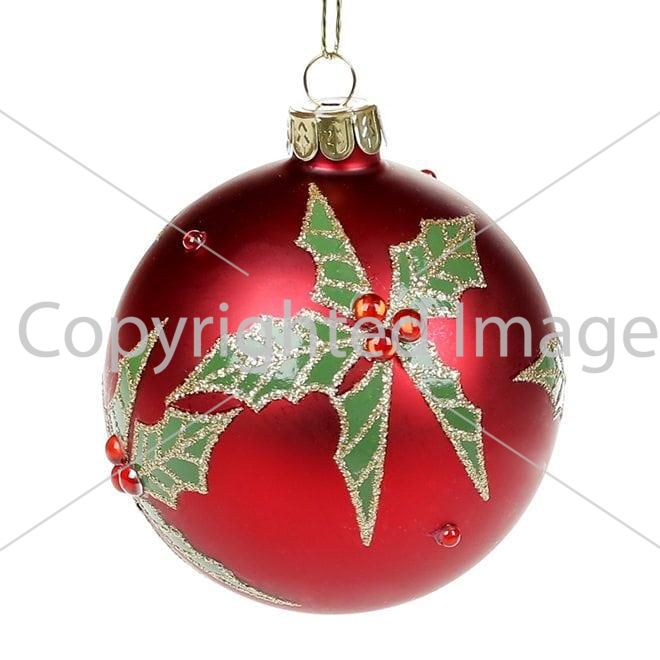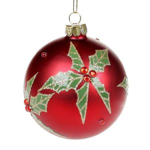 Набір скляних кульок з декором Омела та стразами 8 см, колір червоний із зеленим.