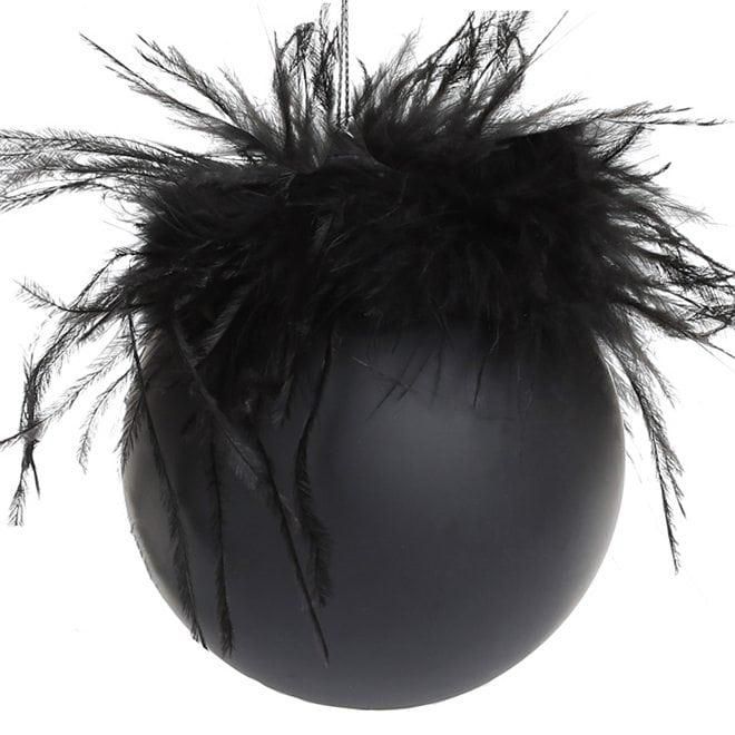 Набір скляних кульок з матовим покриттям та декором з пір'я, 8 см, колір - чорний.