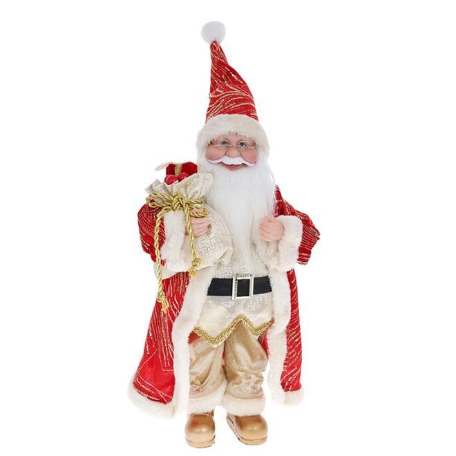 Новорічна декоративна іграшка Санта, 45 см, колір червоний із золотом. Матеріал – пластик, тканина.