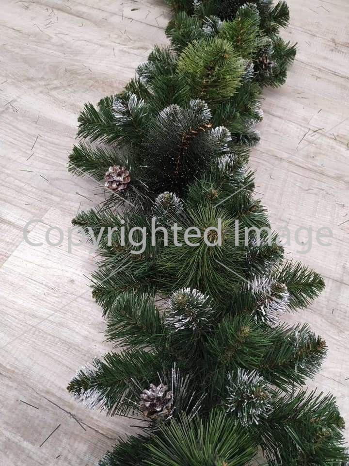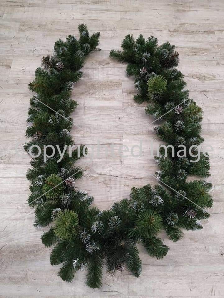 Основа гірлянди комбінована і складається з ялинової та соснової хвої, а також декорована натуральними шишками. Гірляндами зі штучної хвої можна прикрасити заміський будинок та котедж, вікна малогабаритної квартири, стіни та приміщення офісів солідних компаній, торгові та розважальні центри. Висока якість та ошатне забарвлення створюють присутність свята.