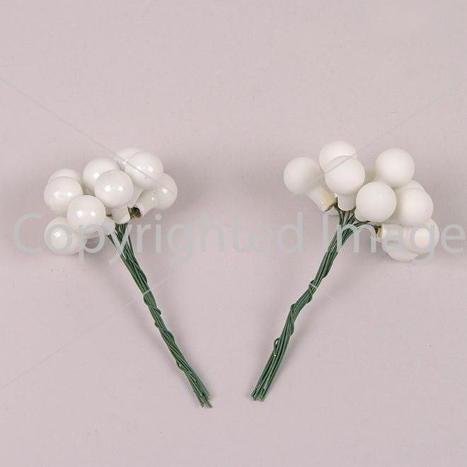 Скляні кульки білого кольору на дроті утворюють невеликий пучок, у ньому з'єдналися 12 скляних кульок. В упаковці два види пучків 6 з матовими кульками та 6 з глянсовими. Такі маленькі скляні кульки обов'язково стануть у нагоді флористам і декораторам, зібравши їх у пучок і доповнивши гілками хвої, намистами, стрічками або іншим декором, вони створять унікальні новорічні прикраси!