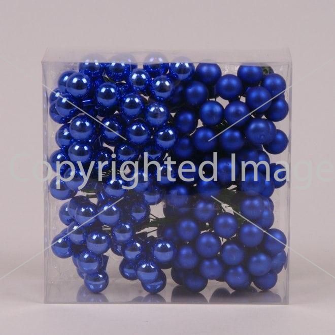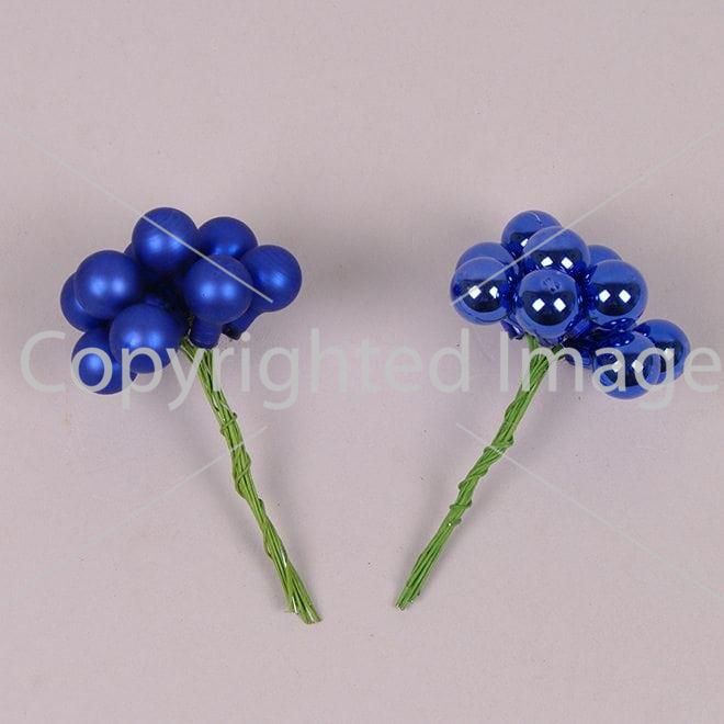 Скляні кульки блакитного кольору на дроті утворюють невеликий пучок, у ньому поєдналися 12 скляних кульок. В упаковці два види пучків 6 з матовими кульками та 6 з глянсовими. Такі маленькі скляні кульки обов'язково стануть у нагоді флористам і декораторам, зібравши їх у пучок і доповнивши гілками хвої, намистами, стрічками або іншим декором, вони створять унікальні новорічні прикраси!