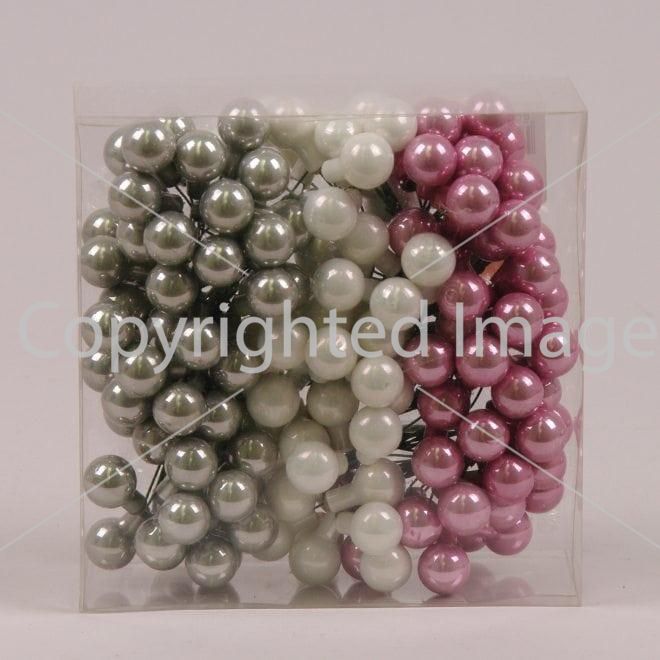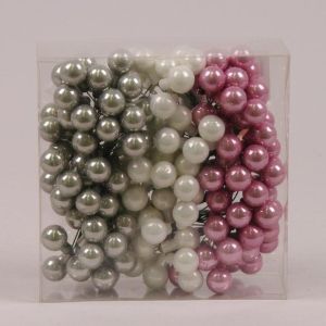 Кульки скляні 1,5 см. рожево-сірі-білі (12 пучків-144 кульки)