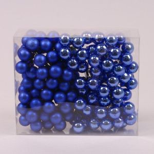 Скляні кульки блакитного кольору на дроті утворюють невеликий пучок, у ньому поєдналися 12 скляних кульок. В упаковці два види пучків 6 з матовими кульками та 6 з глянсовими. Такі маленькі скляні кульки обов'язково стануть у нагоді флористам і декораторам, зібравши їх у пучок і доповнивши гілками хвої, намистами, стрічками або іншим декором, вони створять унікальні новорічні прикраси!