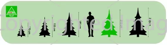 Усі сосни та ялинки укомплектовані металевою підставкою. Голки виготовлені з екологічного синтетичного матеріалу, який не схильний до обсипання та вицвітання.