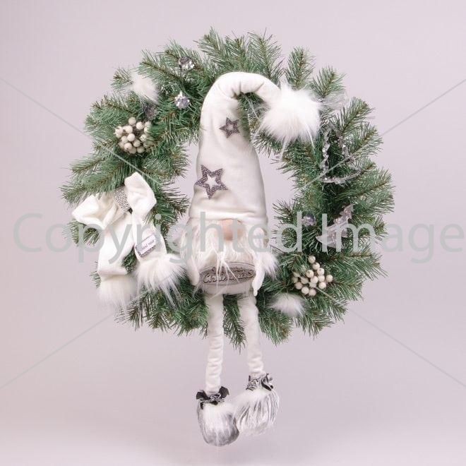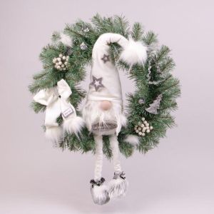 Вінок новорічний з гномом у білій шапці 50 см. 16483